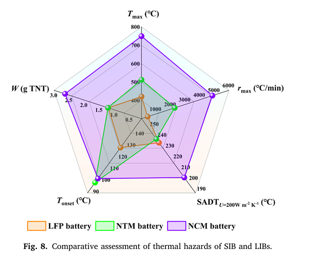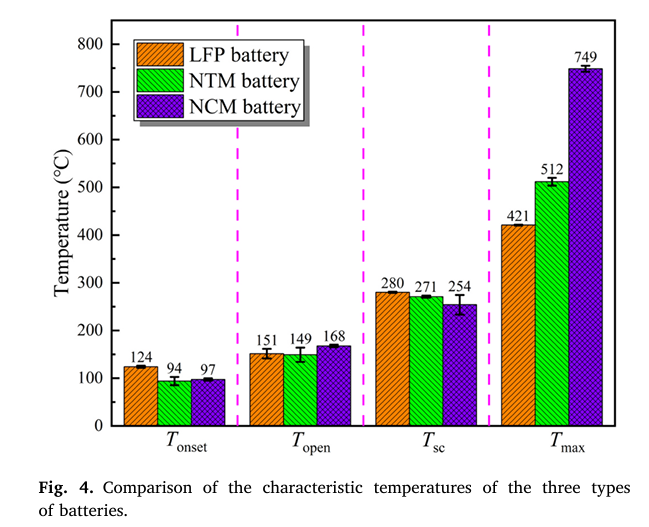 三種電池的熱失控評估模型表明,熱危險性順序為NCM電池>NTM電池>LFP電池。