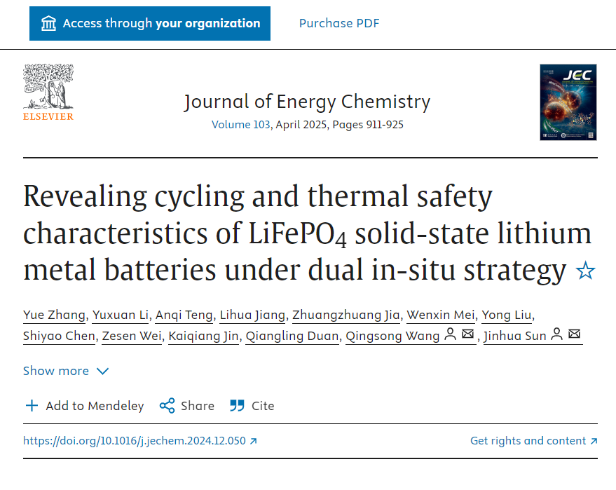中國科學技術大學王青松教授團隊在Journal of Energy Chemistry(IF:14)發表題為Revealing cycling and thermal safety characteristics of LiFePO4 solid-state lithium metal batteries under dual in-situ strategy的論文,該成果由中國科學技術大學火災科學國家重點實驗室、廣東省重點領域研發計劃(2024B1111080001)、國家自然科學基金(52204248和52474258)和中國科學院青年創新促進會(Y201768)等機構聯合支持。